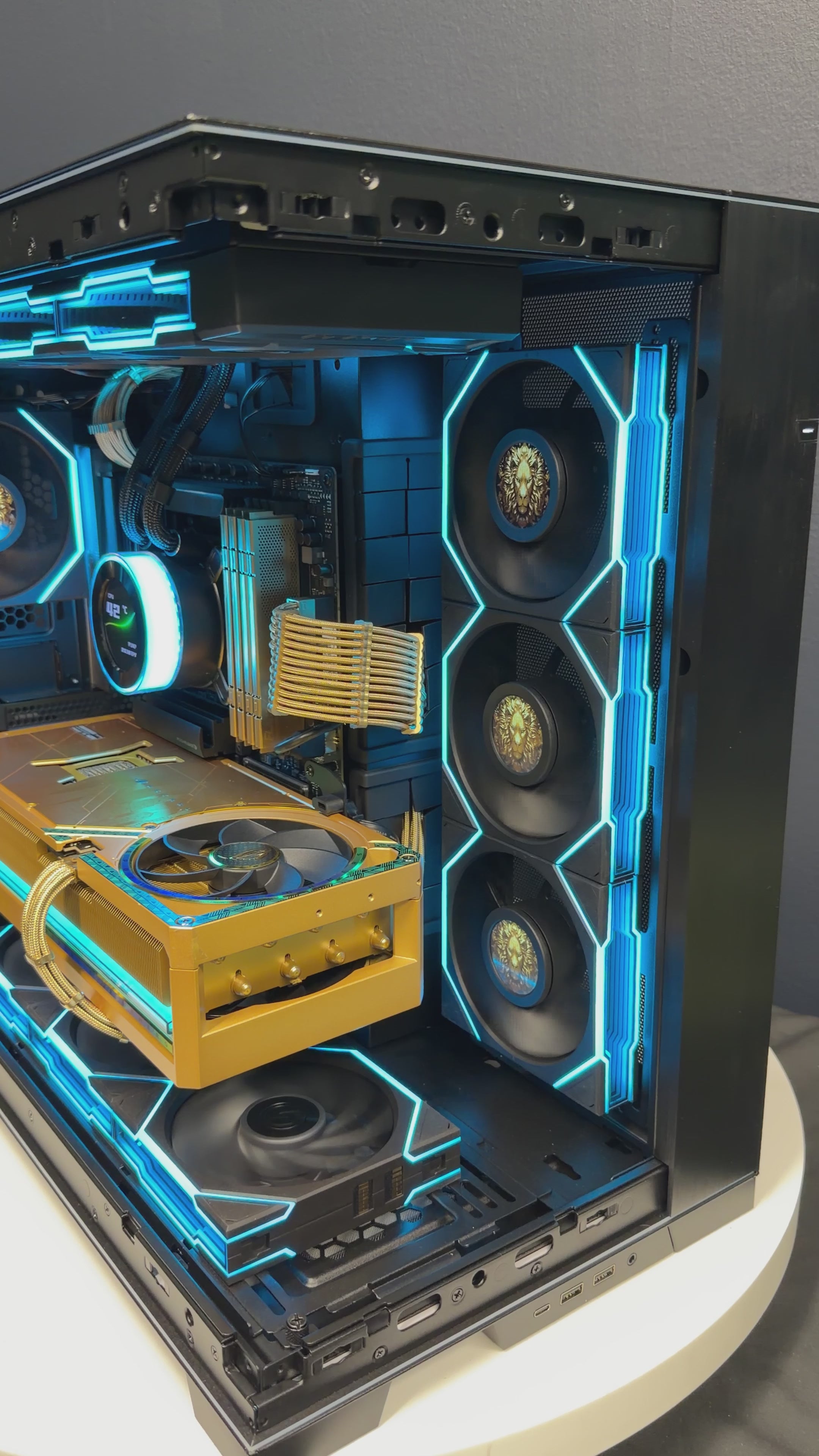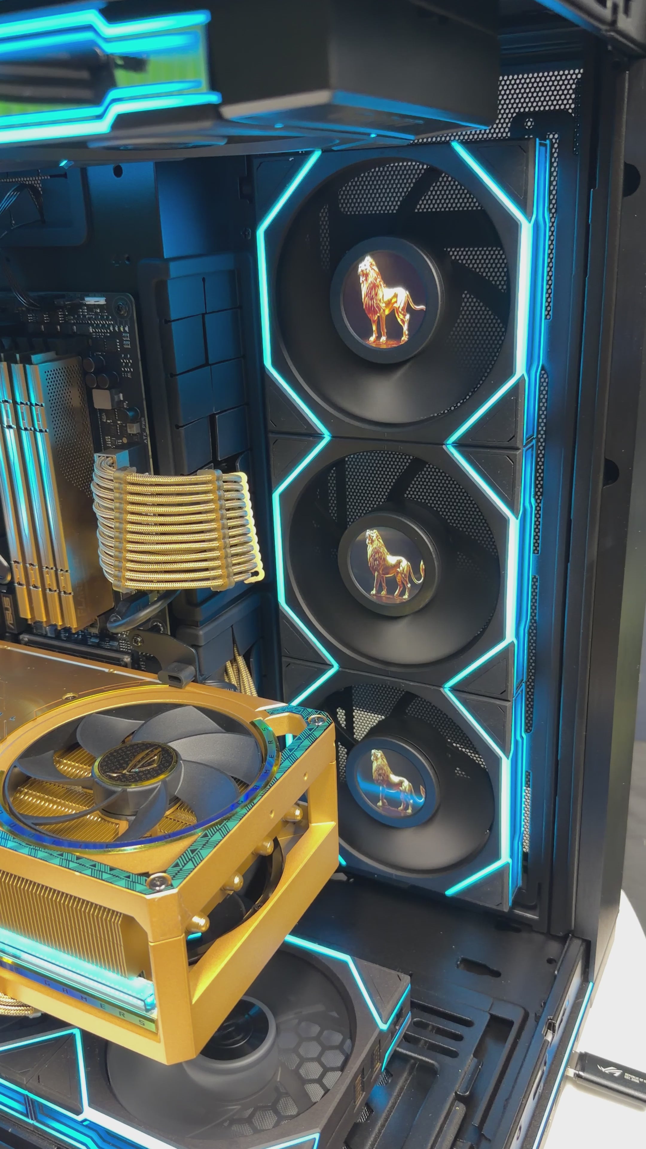 Ready-To-Ship: GOLDEN LION Themed build w/AMD Ryzen 9 9950X3D & ROG Astral 5080 Dhahab Edition, custom hand painted artwork and mods